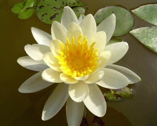 Blüte: reinweiß, breite Schaleform, 10 cm Ø, ca. 26-28 lanzenförmige Blütenblätter