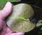 Blätter: ca. 15 cm Ø mehr oval statt rund, dunkelgrün mit brau-nen Flecken, Unterseite olivgrün mit purpurfarbenen Flecken