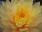 Blüte: sehr helles Gelb an der Basis helles Rosa, ca. 32 löffelförmige Blütenblätter, Form ist tassen- bis sternförmig, ca. 14 cm Ø, Blüte steht bis zu 10 cm über der Wasseroberfläche