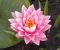 leuchtendes Rosa mit gelben Staubblättern, Form sternförmig, duftend, Blüten liegen meistens auf dem Wasser, 34-39 lanzen-förmige Blütenblätter, 16 cm Ø
