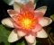 Mitte kupferfarbig mit Rosa zum Rand immer heller werdend, wird von Tag zu Tag dunkeler, Blüte steht 2-5 cm über der Wasser-oberfläche 6-8 cm Ø, 22-23 Blütenblätter