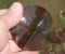 10x15 cm oval, dunkelgrün mit braunen Flecken, Unterseite braunrot, Blatteinschnitt leicht geöffnet, Blattstiel rotbraun